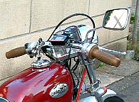 | アドバイス | 取り付けは簡単でノーマルと取り替えるだけです。ワイヤー、配線ともにそのままで取り付けられると思います。ハンドル交換の時は、グリップを外すのに苦労しますが、コツはハンドルとグリップの隙間にCRCやパーツクリーナなどを吹き込んでやると抜けやすくなります(グリップはゴムなのでゴムが変形・変質しないものを使いましょう)。ハンドル交換の際は、ハンドルを外す前にグリップ、スイッチ類(レバー)をすべて外してしまったほうが作業が楽になります。ハンドルクランプの締め方はヘッドライト側を締め込んでからタンク側を締めこみます。締め込みが甘いとハンドルが動いてしまうので注意です。 |