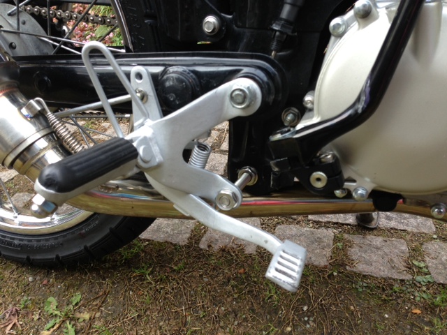 | カスタム時の注意 | スイングアームのシャフトを抜かないと付きません。抜くときにスイングアームが外れてしまうので注意。 リアブレーキスイッチの固定がうまくいきませんでした。無理矢理タイラップで固定してます。 リアブレーキのアームを逆さに付けましょう。ただブレーキ損耗の目印は全く意味を成さなくなります。 ステップ周りの部品は振動で緩みやすいのでネジロック剤など使って緩ないよう注意しましょう。 |