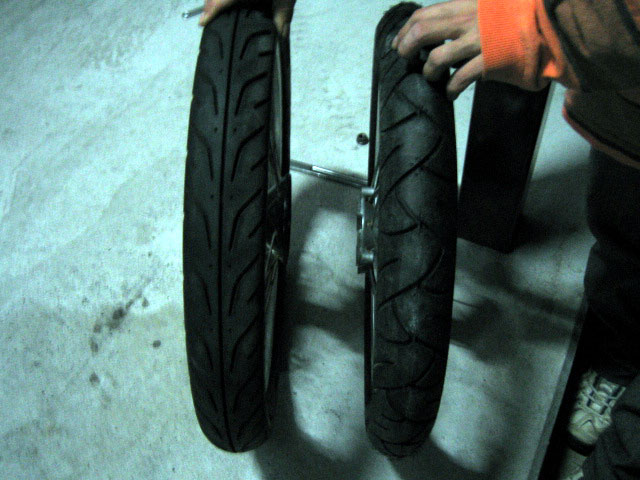 扁平の差はこんなに!! サイズは2.75-17と70/90-17 |