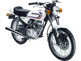 HONDA CB125JX | 上記同様、ほぼポンに近いけど、こちらは18インチになってしまう。そうなるとリアも18インチ化したほうがいいだろうし…。実際このフロント周りにリアも18インチ仕様がkn5氏のベンリィだが、前後18インチはベンリィのフレームにはちょっと酷かな…?車高も上がっちゃうだろうし。その前に、古い車種なので程度のいいモノを見つけるのが大変。 |  |