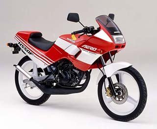 HONDA NS-1 | デイトナフォークを装着していることから、フォーク径が同じ(Φ31)NS-1はそのまま流用が可能になる。しかしホイルがキャストになってしまうという大問題が伴うので、簡単にはいかなそう。スポークホイルに拘りがないのなら、ステムを打ち換えてそのまま使えばいいんだろうが、その拘りは捨てられそうにない。(笑) まぁスポークでも黒なら許せるんだけどね…。リアもやるとなると…大手術だよなぁ@@ 穴あきローターに2POTキャリパーなど、ブレーキパーツについては言うことなし。使えるなら使いたいところ。 |  |